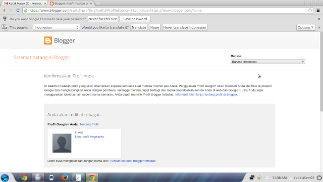 lalu masukan email google untuk melanjutkan pembuatan blog,seperti gambar di bawah ini